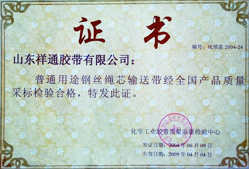 普通用途钢丝绳习输送带合格证书