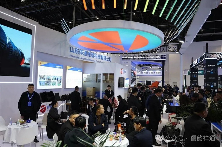 在60多平方米精心设计的展区内,祥通橡塑以“科技、创新、专业”为主题,打造了一个集产品展示、技术交流、商务洽谈于一体的现代化展陈空间。整个展区以企业标准色为主色调,配以醒目的LED大屏幕,循环播放着具有孔孟之乡、运河之都和祥通特色企业文化的原创歌曲,营造出温馨的交流环境。
