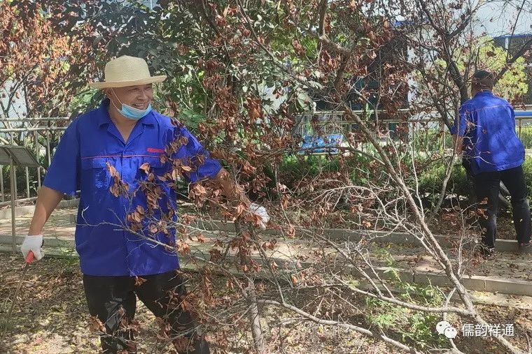 在劳动中,员工们分工明确,有的手持电锯把枯死的树枝锯掉,有的在树下把锯下的枯树枝搬运走,大家干的是热火朝天,共同为厂区的绿化、公司的环境整洁作出贡献,整个厂区看起来不仅干净而且整洁舒适。